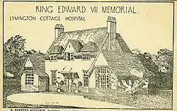 The fundraising for the new hospital was led by Lord Arthur Cecil, one of the younger sons of 2nd Marquess of Salisbury.[1] It was designed by Horace Bernton-Benjamin, a local architect, and included two four-bedded wards and one emergency ward.[1] It was opened as the King Edward VII Memorial Hospital in 1913.[2]
