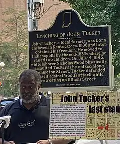 John Tucker (born around 1800) was the victim of a racial terror lynching that took place on July 4, 1845, in downtown Indianapolis, Indiana. Tucker was a free Black man, a husband and a father, who was working as a farmer at the time of his death. Tucker was attacked and killed by three drunken white men in front of a crowd. Two of the men were arrested for Tucker's murder, but only one was convicted.