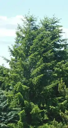 There is a large range of vegetation that exists in Vancouver's temperate rainforest. This vegetation mostly consists of conifers with scattered pockets of maple and alder, and large areas of swampland which are even found in upland areas, due to poor drainage.[5] The conifers are a typical coastal British Columbia mix of Douglas fir, western red cedar and western hemlock. The Vancouver area is thought to have the largest trees of these species on the British Columbia Coast.