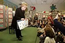 Cheney giving a public reading from her book America: A Patriotic Primer to the students of Vicenza Elementary School in Vicenza, Italy (2004)