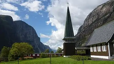 Lyse Chapel (Norwegian: Lyse kapell) is a parish church of the Church of Norway in the eastern part of the large Sandnes Municipality in Rogaland county, Norway. It is located in the very small village of Lysebotn, at the end of the Lysefjorden. It is one of the two churches for the Forsand parish which is part of the Sandnes prosti (deanery) in the Diocese of Stavanger. The brown, wooden church was built in a long church design in 1961 using designs by the architects Gustav Helland and Endre Årreberg. The church seats about 150 people.[1][2][3]
