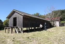 - A holding pen (LH-028) associated with the former butcher's shop/meat store, measuring 9 metres (30 ft) long by 6 metres (20 ft) wide, with a perimeter fence of steel posts with wire mesh. A plywood chute on the west side provides access to the butcher shop/meat store.[1]