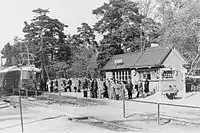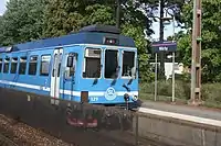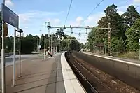 Mörby station is a railway station on the Roslagsbanan 891 mm narrow gauge railway located in Danderyd Municipality northeast of Stockholm, Sweden.