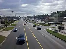 M-11 is maintained by the Michigan Department of Transportation (MDOT) like other state highways in Michigan. As a part of these maintenance responsibilities, the department tracks the volume of traffic that uses the roadways under its jurisdiction. These volumes are expressed using a metric called annual average daily traffic, which is a statistical calculation of the average daily number of vehicles on a segment of roadway. MDOT's surveys in 2010 showed that the highest traffic levels along M-11 were the 41,214 vehicles daily between Kalamazoo and Breton avenues in Grand Rapids; the lowest counts were the 8,153 vehicles per day in Ottawa County.[7] All of M-11 has been listed on the National Highway System,[8] a network of roads important to the country's economy, defense, and mobility.[9]