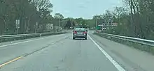 By the end of the 1950s, the routing through Muskegon was altered. Instead of terminating in the park at the outlet of Muskegon Lake into Lake Michigan,[17] M-46 was routed to follow US 16 to the car ferry docks.[18] The last section of gravel highway was also paved in Newaygo County near the Montcalm County line.[19][20] The routing of M-46 between Casnovia and Howard City was altered in 1973 when the US 131 freeway was opened north of Cedar Springs by then-Congressman Gerald R. Ford.[21] M-46 was restored to the Kent City–Cedar Springs roadway it used in the 1930s and routed concurrently along US 131 again.[22] [23] In the process, M-46 replaced a section of M-57 that had been designated along 17 Mile Road in late 1948 or early 1949.[24][25] The last change to M-46's routing was made in the early 1980s. The extension through Muskegon to the car ferry docks was reversed, truncating the highway to its current terminus at then-Bus. US 31 in 1984.[26][27] The business loop was shifted away from this location in 2007, leaving M-46 to terminate at a junction with a city street instead of another state highway.[28][29]
