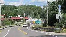 In 1919, the trunkline running through Boyne City was originally labeled M-57.[2] In 1927, the entire highway was renumbered, and since this change, the trunkline has carried the M-75 moniker.[3] The M-75 designation was left unaltered when US 27 between Gaylord and Indian River was converted to a freeway; this freeway was redesignated as I-75 in 1962.[8][9] Some states, such as California, do not allow two highways in their state to carry the same highway number,[10] which is not the case in Michigan.[11] A reconstruction project in 1966 bypassed some sharp curves in the roadway and straightened sections between Boyne City and Walloon Lake.[12][13] As of 2008, the highway remains unaltered since the reconstruction.[11]