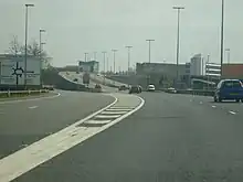 The motorway was opened throughout its entire length in 1976. A junction was originally planned for a new development in the Tipner area of Portsmouth, known as the Gateway Project,[1] which was shelved at the time. The junction's construction was abandoned primarily because planners realised that it would breach regulations that there must be a minimum of 1.25 miles (2.01 km) between motorway junctions. Before construction was halted, significant work had been carried out, including four incomplete slip roads with no road surfacing, two bridges above the site for the main roundabout, and realignment of Tipner Lane so that it served the roundabout. In 2001, the Sails of the South was unveiled close to the site of the missing junction. In 2005, Portsmouth City Council carried out refurbishments to gantry mounted signs on approach to the M27 junction. New signage was stuck over old signage, and was significantly smaller and disproportionate to the previous layout. Incorrect lane illustrations, lack of adequate route information, and increased difficulty to read at a long distance lead to driver frustration and confusion.