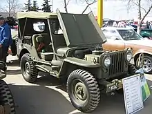 The Willys MC, formally the 14-Ton, 4 x 4, Utility Truck M38, or the G740 by its U.S. Army Standard Nomenclature supply catalog designation, is a quarter-ton four-wheel drive military light utility vehicle made by Willys between 1949 and 1952. It replaced (in production), and succeeded the World War II Willys MB and Ford GPW models, with a total production of some 50,000 units — less than one tenth the number of WWII models built.[1] Unlike during WWII, Ford was no longer involved in the production.
