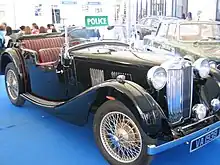 The car used a tuned version of the push-rod, overhead valve four-cylinder Morris TPBG type engine that was also fitted to the Wolseley 12/48 and Morris Twelve series III. The MG version had twin SU carburettors and developed 54 bhp (40 kW) at 4500 rpm. Drive was to the live rear axle via a four-speed manual gearbox with synchromesh on the top three ratios, though on some early cars it was only on the top two speeds. 19-inch wire wheels were fitted, and the 10-inch (250 mm) drum brakes were hydraulically operated using a Lockheed system. In-built hydraulic jacks were standard. Suspension was by half-elliptic springs all round with a live rear axle and beam front axle. Luvax shock absorbers were fitted, the rear ones adjustable from the dashboard.
