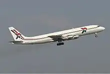 An MK Airlines Douglas DC-8 shortly after take-off at Prague Airport in 2004
