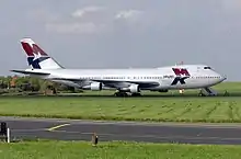 Due to financial problems, MK Airlines had to suspend all flight operations on 10 June 2008, and went into administration.[1] After an investment had been received from Trans Atlantic Aviation, a subsidiary of the Belfairs Group, a limited extent of operations could resume on 20 June of that year.[1] Following a reorganization of the airline's funding, bankruptcy administration could be left on 24 June 2009.[1] Plans for an acquisition of more fuel-efficient aircraft of the Boeing 747-400 type could not be realized.
