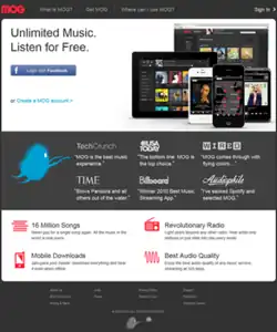 - ↑ "How MOG Works". MOG. Archived from the original on 15 January 2013. Retrieved 21 January 2013.