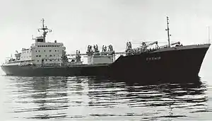 Sarny (Russian: Сарны) was a merchant ship of Black Sea Shipping Company (Soviet Union), tweendecker type general cargo ship, project 1563.[1][2][7] This ship is one of the Slavyansk class of cargo ships.[7] The ship was named in honor of the city Sarny in the Ukrainian SSR, USSR.