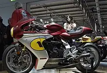 The MV Agusta Superveloce is a retro racer styled motorcycle produced by the Italian motorcycle manufacturer MV Agusta in 2020.[4] It is described by MV Agusta as "a modern interpretation of the iconic stylistic concept of the MV Agusta. A fusion of vintage and contemporary ensures that the future incorporates the memories of good times gone by".[1]