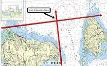 The question is - did Dickman turn his tug ESE after passing the Captain Islands, and begin taking the NW wind (large arrow on chart below) on the port quarter, or did he continue another half an hour until the tug was abeam of the Stamford breakwater, a familiar landmark to him, and then turn southeast. This route would have allowed for the wind and sea to follow the tug, and reduce the rolling. It is my thought that had he continued along his course, he would have been abeam of Stamford at 1600, and may have opted for putting into harbor there, as it was well protected and deep enough for the tug's draft.