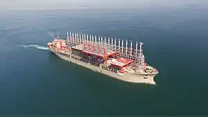 The MV Karadeniz Powership Onur Sultan is a Liberia-flagged floating power plant, owned and operated by Karpowership. In 2016, she was sent off from the Sedef Shipyard in Tuzla, Istanbul, Turkey to Myanmar to supply electricity to the power grid.[2] In 2018, she was commissioned to supply electricity to the power grid in Indonesia.