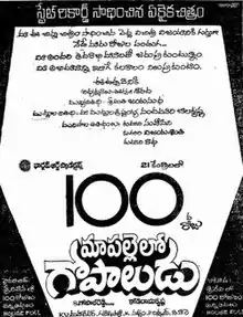 Maa Pallelo Gopaludu is a 1985 Telugu-language film directed by Kodi Ramakrishna. The film starred Arjun and Poornima. The film was commercially successful and ran for 367 days. This film marked the Telugu debut of Arjun.[2] Arjun and Kodi Ramakrishna later collaborated for four other films.[3]