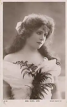 Mabel Love (16 October 1874 – 15 May 1953), was a British dancer and stage actress. She was considered to be one of the great stage beauties of her age, and her career spanned the late Victorian era and the Edwardian period. In 1894, Winston Churchill wrote to her asking for a signed photograph. Among her West End stage roles were Francoise in La Cigale and Pepita in Little Christopher Columbus. Later, she appeared in Man and Superman on Broadway.