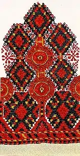 Macedonian embroidery began to develop with the arrival of Slavic peoples to the Balkans with which they also started adjusting their styles with Old-Balkan cultural elements. Byzantine culture was also of significant influence in the development and formation of Macedonian traditional embroidery partly due to its vicinity.[1] Despite the five century-long Islamic influence of the country and its peoples under the Ottoman Empire, it is not further reflected on Macedonian embroidery. Nevertheless, Islamic elements, reflected in the colorful pattern changes and infiltration of new motives are evident on embroidery patterns.[1] Despite the different cultural and historical factors that influenced it, the differentiated Macedonian embroidery was mainly the result of collectivist artistic potentials from the environment where it sprang up and existed.[1]