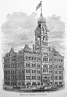 The building was originally called the Chamber of Commerce Building or the Grain Exchange.[4] It was built in 1879 as an investment property by U.S. Representative Alexander Mitchell. During the 1970s, the building underwent extensive restorations.
