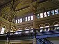 The Grain Exchange was located in a large three-story room in the building. The room was designed in a Simple Italian architectural style, with soaring ceilings, hand painted frescoes, gold leaf and over 10,000 sq. feet of space. The grain exchange is closely linked with the early commercial history of Milwaukee, when for a brief time, the city was the world's largest primary wheat market for trading, exporting and inspecting grain. Milwaukee's lake port was near vast acres of wheat in the state, so the Milwaukee grain exchange conveniently located there and invented and utilized the very first octagonal trading pit. The grain exchange operated from 1880 to 1935.[6]