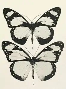 Amauris nossima figure 1, A. n. var. conjuncta figure 2