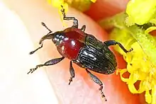 Madarellus undulatus is a species of weevils belonging to the Baridinae subfamily. It is 2.8–4.5 millimetres (0.11–0.18 in) long and have brown coloured head and black or sometimes reddish body. The prothorax is glossy and somewhat punctate with striate elytron. M. undulatus can be found in both Canada (Ontario and Quebec) and in the United States.[1] Larvae feed on poison ivy and Parthenocissus quinquefolia.[2]