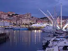 In the Middle Ages the harbour was strictly linked to the city, but in 1536 new city walls were built that divided for a long time the city and the port.[4] Only in 1992, being unused this part of the port, in the meantime enlarged towards the west, this area was redeveloped by Renzo Piano and opened to public access during Genoa Expo '92 exhibition.[4][3]