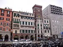 The neighbourhood had long the economical centre of the city, and its role was strengthened in the 19th century, when the 16th-century "Loggia of the Merchants" became the seat of the stock exchange. However at the beginning of the 20th century the business centre of Genoa moved to De Ferrari Square and a period of decline began for the whole old town. During World War II many buildings were severely damaged by bombings. After the war the lower-class district on the neighbourhood was populated by petty criminals and later by criminal organizations who made the neighbourhood the main prostitution centre in Genoa, causing the abandonment by most of the original inhabitants and the consequent degradation of the buildings.[6][7] During the first decade of the 21st century restructuring programs took place, and after many years of decline also these areas of the neighbourhood are showing signs of recovery.[8]