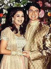 Amidst media speculation on her personal life, Dixit married Shriram Madhav Nene, a cardiovascular surgeon from Los Angeles, California on 17 October 1999, in a traditional ceremony held at the residence of Dixit's elder brother in Southern California.[248][249][250] Nene had never seen any of her films, and was unaware of her celebrity status.[251] Dixit explained their relationship by saying, "It was very important that he didn't know me as an actress because then he would know me as a person first. When people have seen you as an actress, they have pre-conceived notions... None of it was there here with him. I found the right person, I wanted to get married and I did."[252] Dixit and Nene's wedding reception in Mumbai was attended by several prominent Indian personalities, including then CM of Maharashtra Vilasrao Deshmukh, Shivsena chief Bal Thackeray, Dilip Kumar, Saira Banu, Yash Chopra, Sridevi, and many others.[249]