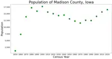 Madison County is a county located in the U.S. state of Iowa. As of the 2020 census, the population was 16,548.[1] The county seat is Winterset.[2]