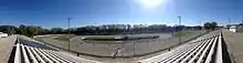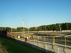 The track was a quarter mile long before it was torn up and replaced with a half mile paved oval in 1969.[5] The first winner on the half mile was Ramo Stott,[5] and the surface's first champion was Jimmy Back.[6] The track seats over 10,000 spectators.[1] There is a quarter mile track inside the half mile. A track veteran described racing the track by saying that you drive into the corners way over your head before you stand on the brakes. The more that you frighten yourself in the corners, the faster that the laps ended up.[7]