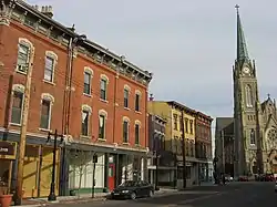 The historic district is centered on the imposing neo-gothic[3] Saint Francis De Sales Catholic Church at the intersection of Madison Road and Woodburn Avenue. This intersection and the business district along Woodburn Avenue are known locally as DeSales Corner.[2]