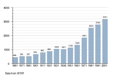 - ↑ "Popolazione Residente al 1° Gennaio 2018". Italian National Institute of Statistics. Retrieved 16 March 2019.