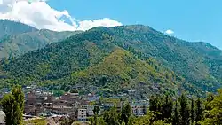 Madyan (Pashto and Urdu: مدین) is a popular hill station located in the Swat District of the Khyber Pakhtunkhwa province of Pakistan. It is situated at a distance of about 55 kilometres (34 mi) from Mingora. It is a tourist destination. Each year, thousands of tourists from all over Pakistan visit it, especially in summer Madyan is also famous for its trout fish. Agriculture and tourism-related businesses like handicrafts outlets, restaurants and hotels are the main sources of income for the locals, although a small fraction of the population is also working abroad, particularly in the gulf countries. Madyan Valley is known all over the district because of its perfect weather condition. Tourists are attracted by the transparent and colorless water flowing in a stream that begins from Beshigram (بشیگرام) Valley and meets with the Swat River.