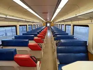 ![]() Interior of a CTDOT coach on Shore Line East service in 2018 | |