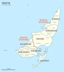 Mafia Island District was created in 1959 and contains 136 suburbs, 23 villages, 8 wards, and 2 divisions, North and South.[6]