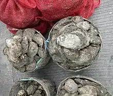 Magallana bilineata, commonly known as the Philippine cupped oyster or slipper oyster, is an economically important species of true oyster found abundantly in the western Pacific Ocean, from the Philippines to Tonga and Fiji. In 2020 an exotic population was discovered in north-east Australia.[2] They grow attached to hard objects in brackish shallow intertidal or subtidal waters, at depths of 0 to 300 metres (0 to 984 ft). They are cultured extensively in the Philippines, where annual landings can range from 11,700 to 18,300 tons. They are known as talaba or talabang tsinelas ("slipper oyster") in Filipino to distinguish them from talabang kukong kabayo ("horse-hoof oyster", Saccostrea malabonensis)[3]