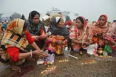 Maghi is the regional name of the Hindu festival of Makar Sankranti celebrated in Punjab, Haryana Jammu division and Himachal Pradesh. In Himachal, the festival is also known as Maghi Saaji[1][2] or Magha Ra Saza.[3] In Bihar and Nepal it is also referred to as Maghi Parva or Maghi Sankranti.[4][5] whereas it is known as Maghi Sangrand or Uttarain (Uttarayana) in Jammu and Sakrat in Haryana, Maghi is celebrated on first day of the month of Magh of Hindu Calendar. It follows on the heels of the mid-winter festival of Lohri which is marked by bonfires in North Indian fields and yards. The next morning Hindus see as an auspicious occasion for ritual bathing in ponds and rivers.[6]