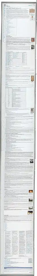 The hand-stitched embroidery is 1.5 metres wide and nearly 13 metres long. It is a response to the legacy of Magna Carta in the digital era and Parker has referred to it as "a snapshot of where the debate is right now", the result of all open edits by English Wikipedians up to that date.[1] It was commissioned by the Ruskin School of Art at the University of Oxford in partnership with the British Library,[2] after being chosen from proposals from a shortlist of artists in February 2014.[3]