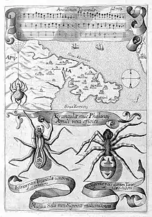 While Magnes is noted today primarily for its arguments against Copernicanism, the work addressed a wide variety of different phenomena, including some that have no relationship to the modern scientific understanding of magnetism. There was a scholarly debate in Kircher's time as to whether 'magnetic' powers (i.e. powers of attraction) could be used to heal wounds. Robert Fludd held that if the weapon used to cause a wound was placed against it, the wound would disappear.[12] Kircher argued that there was no magnetic cure - indeed such a cure would be the work of the devil.[13][14]:47–48 While he dismissed the notion of a magnetic cure for wounds, he devoted a chapter of Magnes to tarantism as a cure for a spider bite - an example, he believed, of magnetic forces of attraction inherent in music.[15][16]