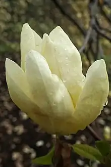 Magnolia 'Elizabeth' is a hybrid Magnolia that is the offspring of a cross between Magnolia acuminata (cucumbertree) and Magnolia denudata (Yulan magnolia). It is the result of a breeding program to create yellow-flowered varieties conducted at the Brooklyn Botanic Garden beginning in 1953. The cream to pale yellow flowered Magnolia 'Elizabeth' gained the Royal Horticultural Society's Award of Garden Merit in 1993.[1] It is named for Elizabeth Van Brunt, who donated funds to the Brooklyn Botanic Garden.[2]