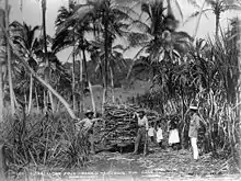 - ↑ View of men loading sugar cane in the fields in Mago