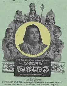 Mahakavi Kalidasa is 1955 Indian Kannada-language film directed by K. R. Seetharama Sastry, in his debut direction. The movie is based on the legends of the poet Kālidāsa. It stars Honnappa Bhagavatar as Kālidāsa, a Sanskrit poet who lived during the 4th and 5th Century CE. It tells the story of how he, an aristocratic young man cursed by his guru with ignorance, goes on to become a great poet. B. Raghavendra Rao, Narasimharaju and B. Saroja Devi (in her film debut) features supporting roles. It was remade in Telugu in 1960 as Mahakavi Kalidasu starring Akkineni Nageswara Rao in Tamil in 1966 as Mahakavi Kalidas starring Sivaji Ganesan. This Kannada film was dubbed into Tamil and released in 1956 as Mahakavi Kalidas.[1] At the 3rd National Film Awards, the film won the award for Best Feature Film in Kannada.[2] The film is seen as a landmark in Kannada cinema.[3]