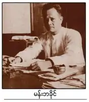 Mahn Ba Khaing (Burmese: မန်းဘခိုင် [máɰ̃ ba̰ kʰàɪɰ̃]; 26 October 1903 19 July 1947) was a Karen[1] politician who served as the Minister of Industry and Labour in Burma's pre-independence government.[2] He was assassinated on 19 July 1947 and was recognized as one of the nine Burmese national martyrs.[3]