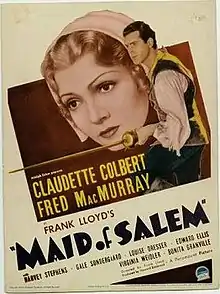 Maid of Salem is a 1937 American historical drama film directed by Frank Lloyd and starring Claudette Colbert, Fred MacMurray and Harvey Stephens. It was made and distributed by Hollywood studio Paramount Pictures,