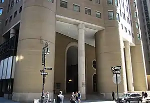 The street level of 33 Maiden Lane, designed by Philip Johnson and John Burgee and built in 1984–86