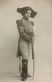 She was Cissie, one of the Babes in the pantomime Babes in the Wood opposite Phyllis Dare as Charley at the Theatre Royal, Birmingham (1904–05),[10] while in July 1905 she was Little Joan in Where the Crows Gathered at the Criterion Theatre.[11] Early 1907 saw her touring as the Second Twin in Peter Pan; or, the Boy Who Wouldn't Grow Up opposite Zena Dare.[12][13] She reprised the role of Alice in the children's musical Alice in Wonderland (1907–08)[14] opposite Alice Barth as the Duchess and the Red Queen at the Apollo Theatre in London.[15] She toured as the First Twin in the 1909-10 tour of Peter Pan opposite Pauline Chase as Peter.[13] In February 1910 she appeared as Mrs Darling and First Twin in Peter Pan at the Duke of York's Theatre opposite Herbert Hollom, the first male Peter Pan.[16][17]