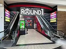 The escalators leading to and from the second-floor Round One