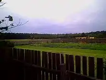 This small village consists of buildings and farmsteads scattered along a country road that runs through a meadow, parallel to a stream. The road, meadow, and stream form a 400 meters (1,300 ft) wide gap through a large forest.